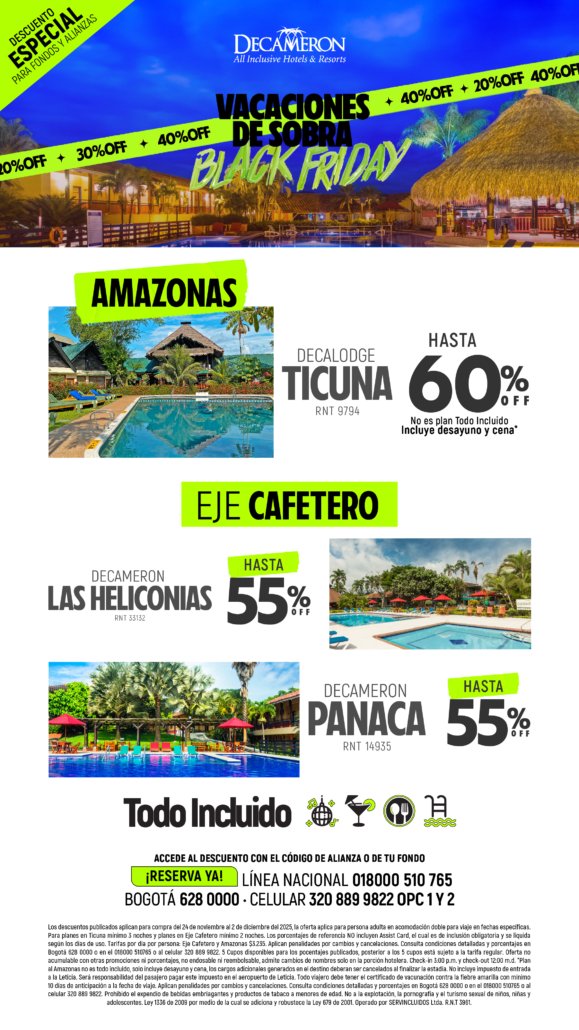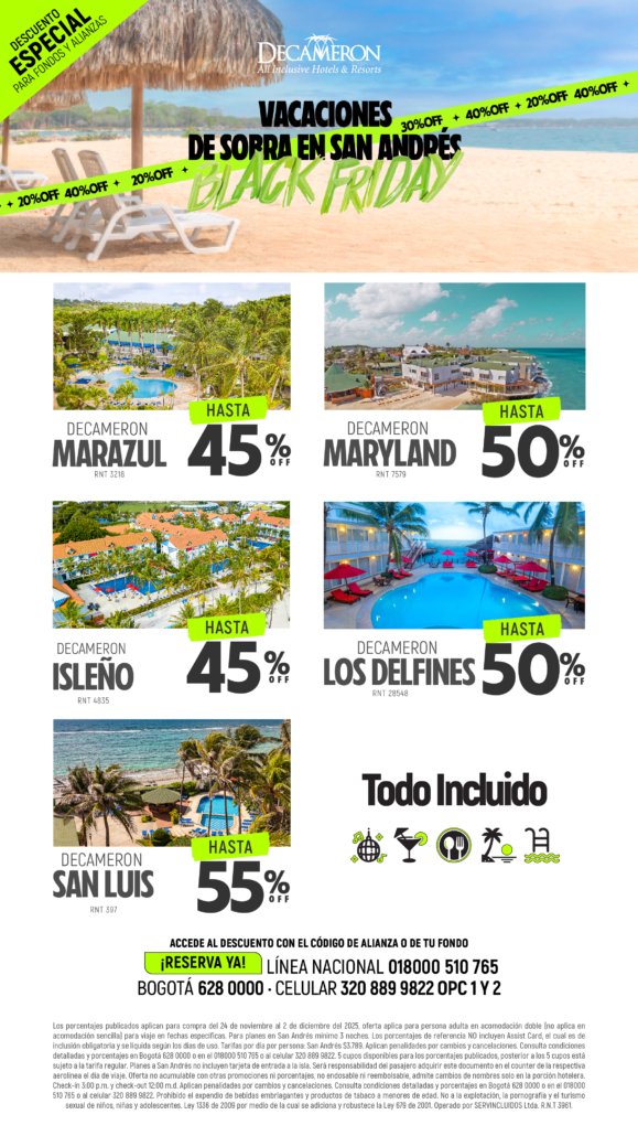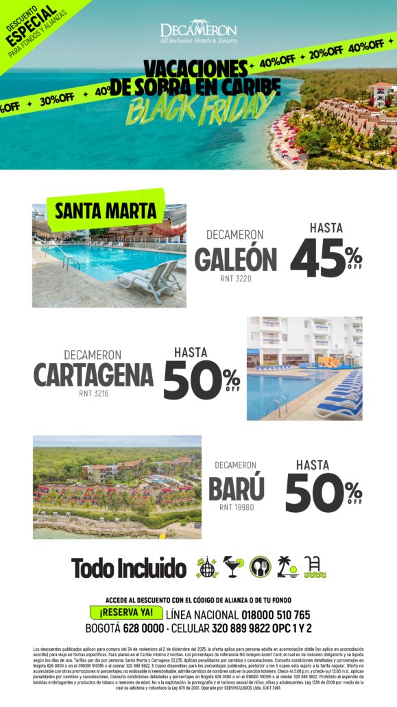El descuento como asociado aplica sobre las promociones que tenga Decameron en el momento vigentes